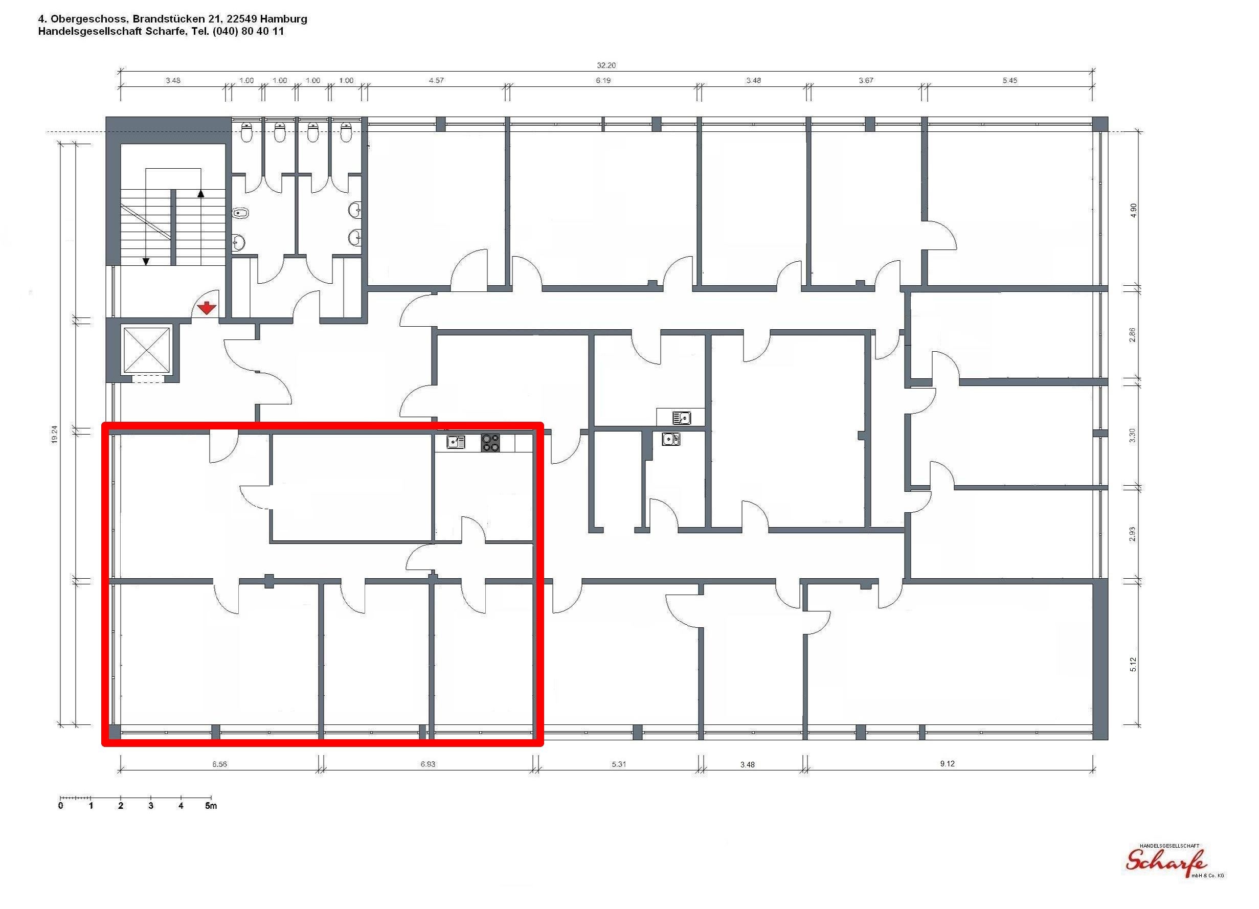 Mietangebot Büroräume 150 m² im vierten Obergeschoss (Endetage):